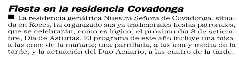Medios de Comunicación en los que salió la RESIDENCIA 3ª EDAD Ntra Sra COVADONGA®
