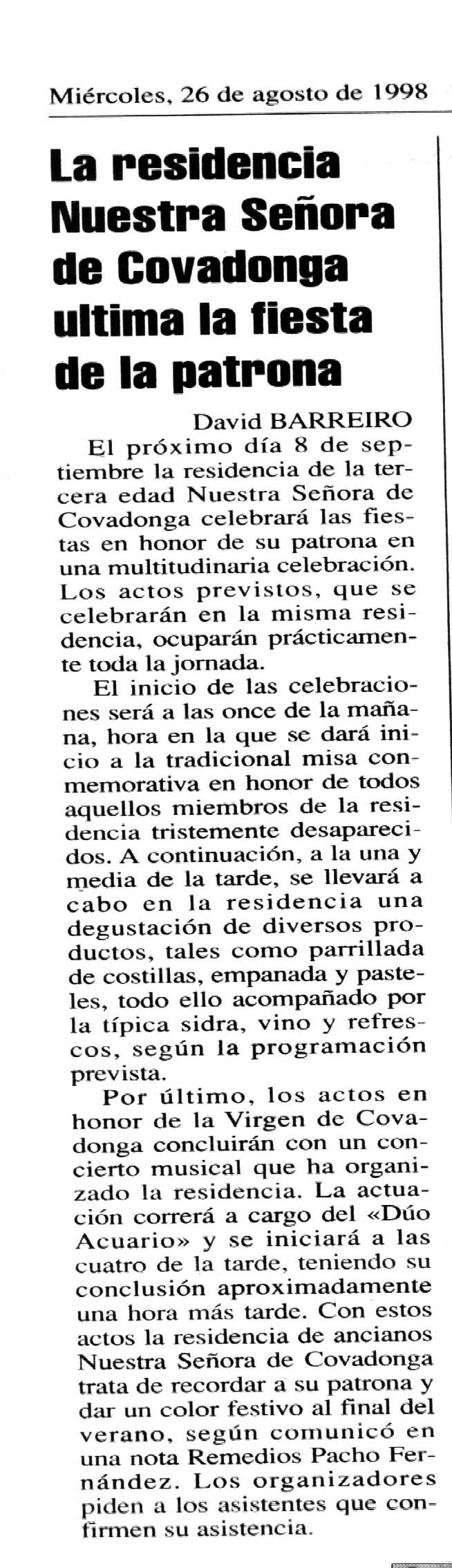 Diario LA NUEVA ESPAÑA 26 de agosto de 1998